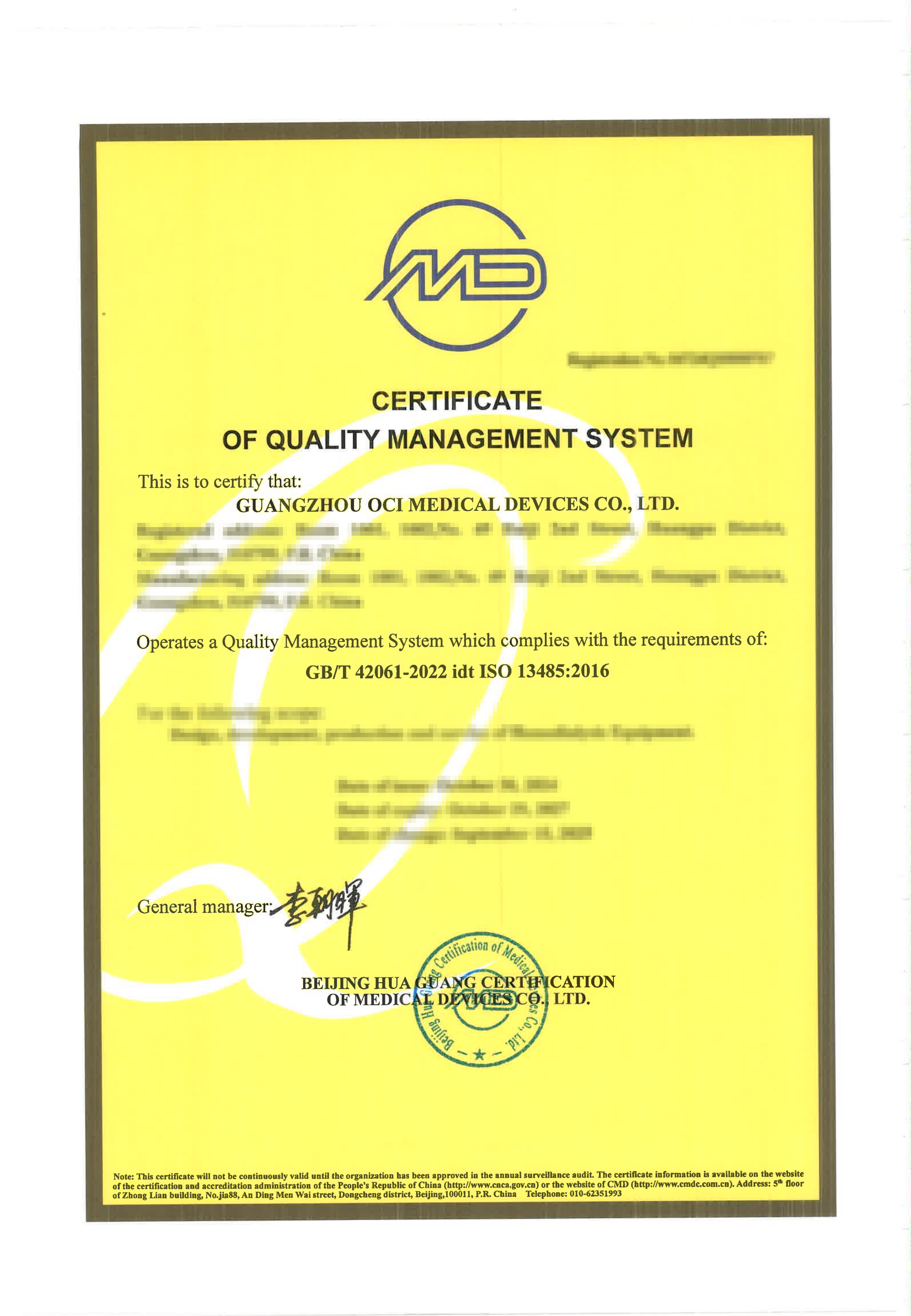 Guangzhou OCI Medical Devices Co., Ltd. specializes in the research, development, production, and sales of blood purification technologies and equipment. The company is committed to providing professional blood purification product solutions for dialysis healthcare professionals and patients worldwide, along with comprehensive, timely technical support, clinical applications, and after-sales services. Leveraging profound technical expertise and industry experience, We have successfully developed the Aide series hemodialysis devices through independent R&D. This product has obtained the Medical Device Registration Certificate (Class III) issued by the China National Medical Products Administration and has passed the EU CE-MDR certification. Our production system is certified under the ISO13485 and ISO9001 Quality Management Systems for medical devices, and in 2024, the company was recognized as a "High-Tech Enterprise" by the relevant authorities. With a modern production base, we ensure product quality through stringent production process controls and inspection procedures, meeting customized mass delivery requirements of our customers.